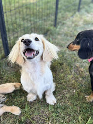Hi, I’m Cotton! I’m a playful and friendly longhaired Miniature Dachshund who loves being close to my family. I’m a true Velcro dog, which means I enjoy cuddling, following you around, and being part of everything you do. My fun-loving personality makes me a favorite around the house. Fun fact I love exploring the house, playing with toys, and snuggling up for cozy naps on my back whenever I can!